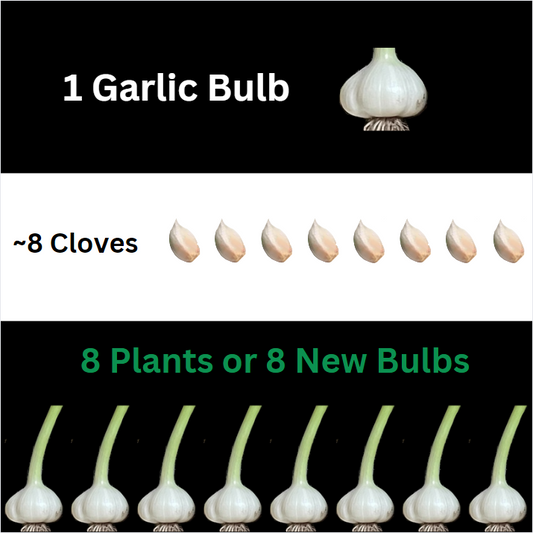 - 1/2 a pound of seed garlic generally includes 4 bulbs, with 7-8 cloves per bulb. When planted this becomes approximately 30 plants. This is the perfect amount for the DIY Gardner that wants to enrich their cooking with an ample amount of home grown garlic for the following season!
